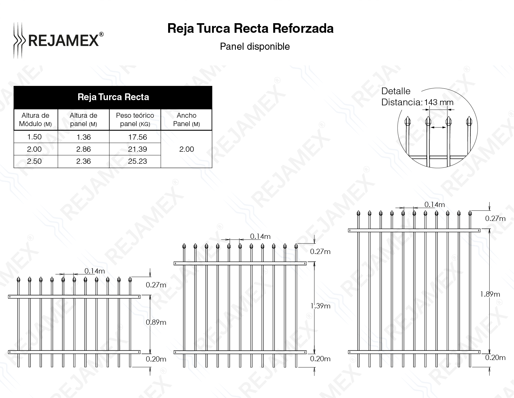 Los paneles de la Reja Turca están fabricados con acero de alta calidad. El acabado es con pintura termoendurecida lo que le da mayor protección contra ambientes corrosivos.